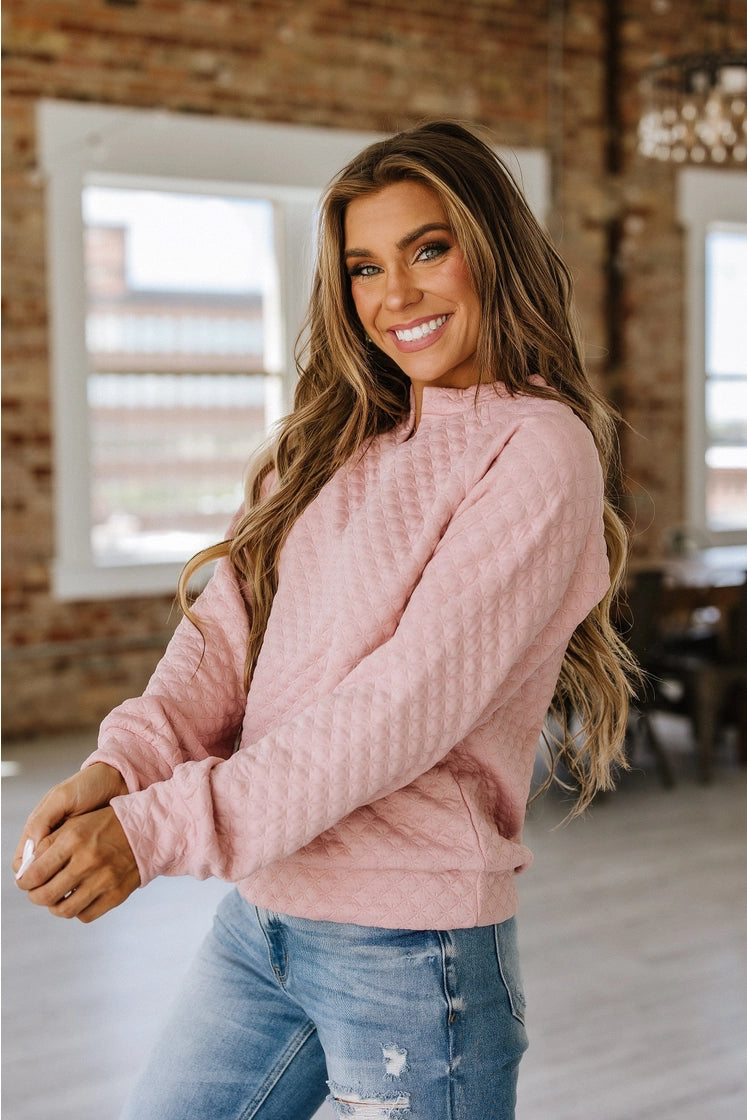Grab this simple and comfy quilted long sleeve top! The quilted design adds a touch of sophistication, and the long sleeves provide extra warmth. A closet must-have! Relaxed fit.