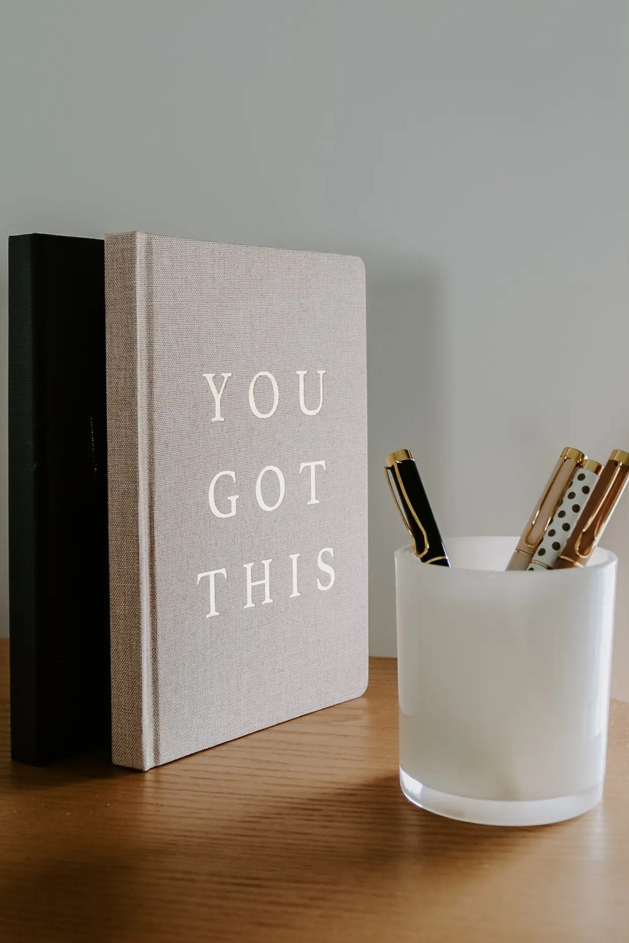 Write down all of your goals and dreams in our You Got This tan and gold fabric journal! With this chic, stylish, easy to write on notebook, there's no better place to jot down motivational notes, inspirational quotes, lists, and all of your great ideas! Perfect for work or school. This desk/office accessory makes a great gift!