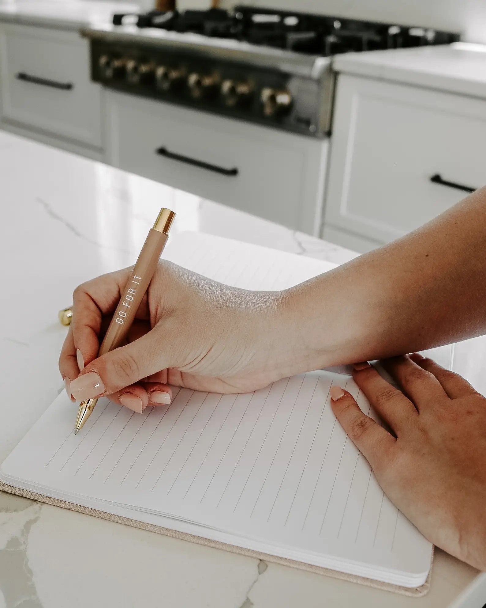 Size: 8.1 x 5.6 x 0.6” • Design: You Got This • Tan Fabric Journal with Gold Foil Details • 100gsm Uncoated Lined Paper • Ribbon Bookmark in Gold • 100 Pages Front and Back (200 Total)