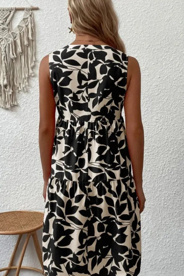 Flower Splicing Dress- Black/White