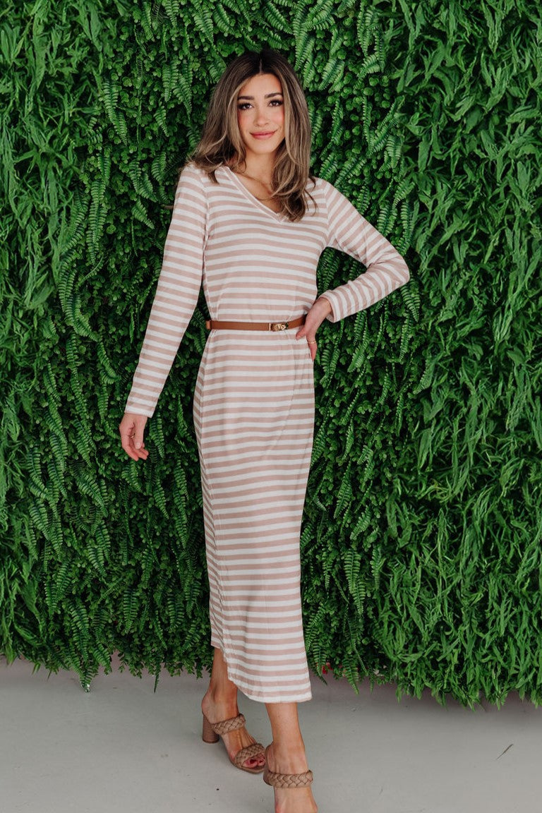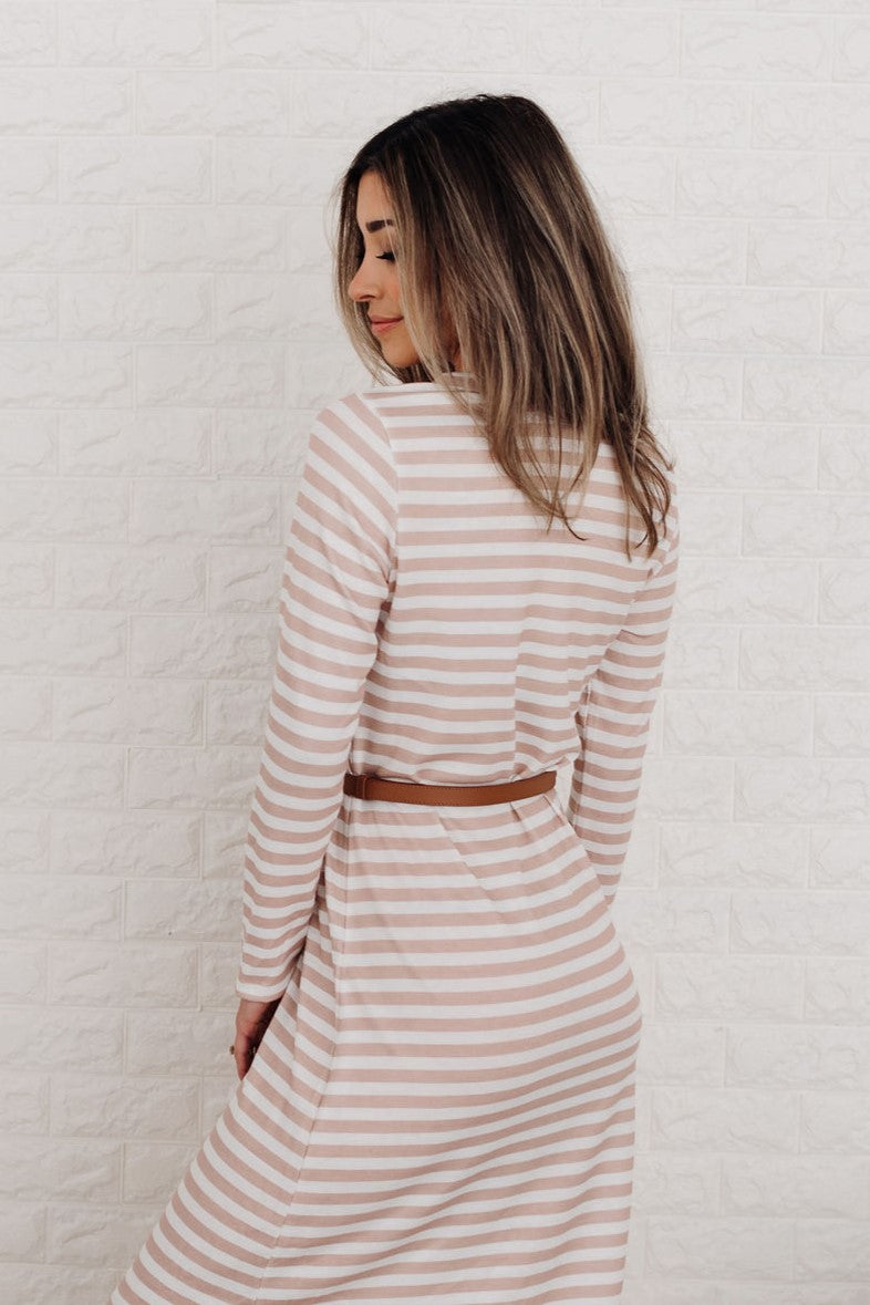 Simple yet stylish. The versatile striped print makes it easy to style. Comes with a V-neck, long sleeves, and skin-friendly fabric.