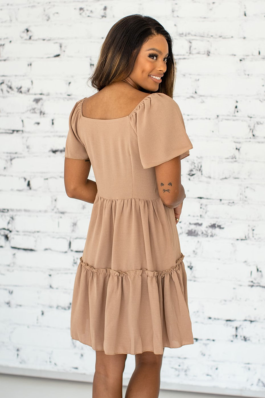 Don't miss out on this darling solid color mini dress. Offers a complimentary neckline that you are sure to love!
