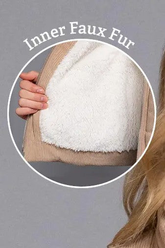 Don't miss out on this cute corduroy puffer vest. Comes with inner faux fur with pockets. A great piece for layering!