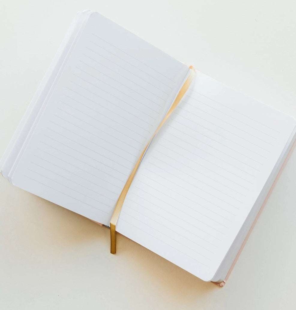 DETAILS: • Size: 8.1" x 5.6" x .6" • Design: Beautiful Girl, You Can Do Hard Things • Light Pink Fabric Journal with Gold Foil Details • 100gsm Uncoated Lined Paper • Ribbon Bookmark in Gold • 100 Pages Front and Back (200 Total)