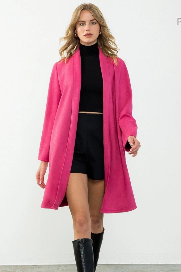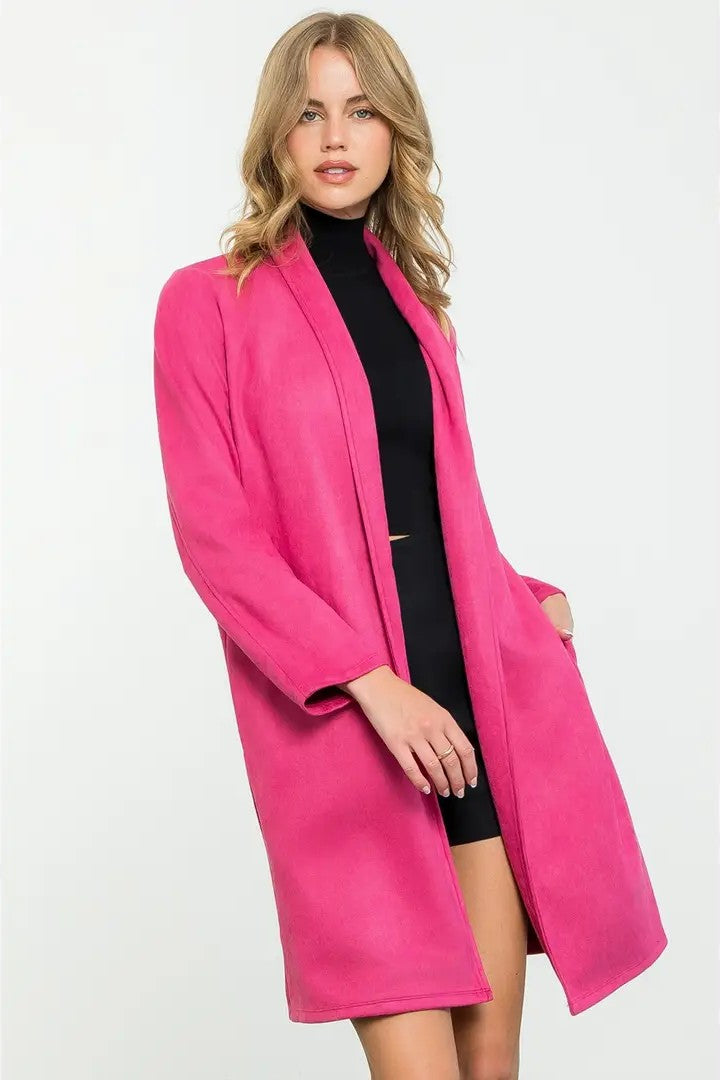 Simple, Stylish and great for layering! This lightweight coat also comes with pockets.