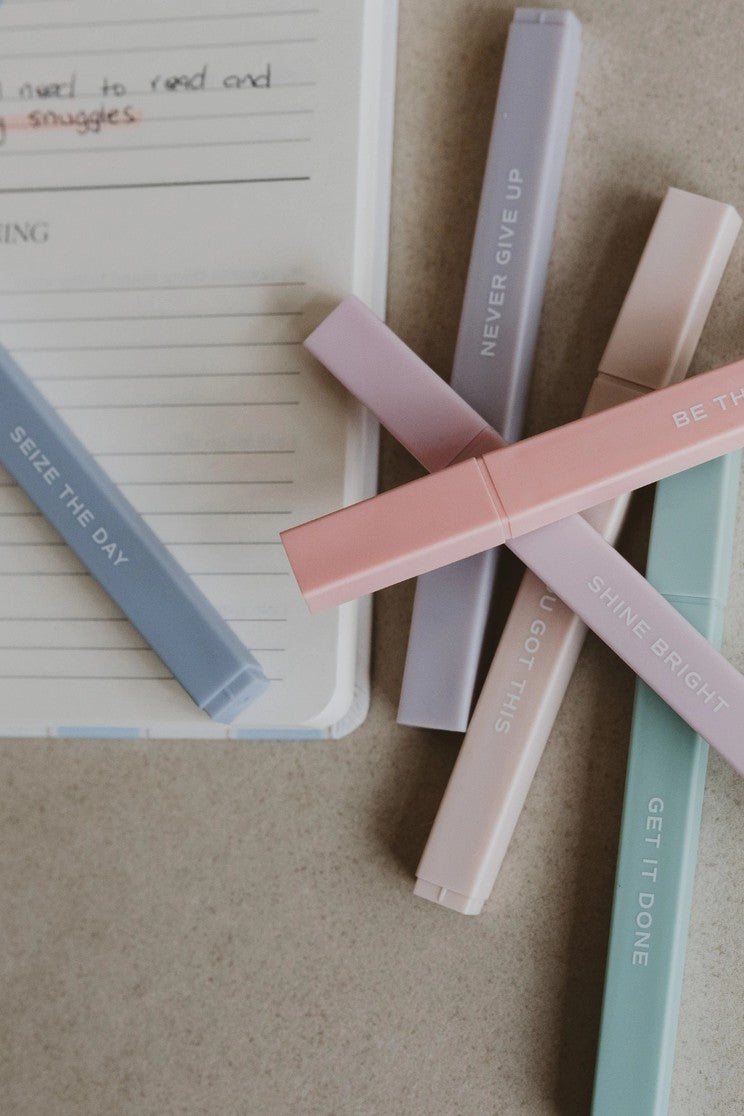 Perfect for journaling, planning, or studying, this set is a stylish and calming addition to any stationery collection, ideal for those who love a minimalist aesthetic. Highlighters Read: You Got This, Get It Done, Never Give Up, Be The Light, Shine Bright, Seize The Day